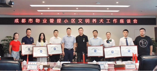 会上,物业服务企业代表分别交流了住宅小区开展文明养犬宣传引导工作的经验做法,省宠物协会、文明养犬活动推广公益机构代表也对文明养犬有关热点问题进行了技术交流和专业指导。按照市公安局、市住建局有关工作要求,经实地考察,市物业管理协会联合省宠物协会在全市设立了6个“文明养犬示范小区”,分别是:保利中心、绿地锦天府、中海城南华府、金沙云庭、华侨城•东岸、华润24城一期。会议还进行了“文明养犬示范小区”授牌仪式。
