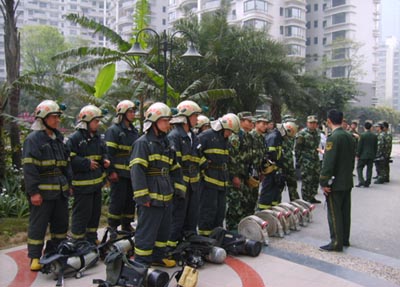 为了让每一位员工(特别是秩序维护队员)熟练掌握灭火器具的使用方法,紧急时刻能够“拎得起、喷得出、达效果”,蓝光嘉宝物业将2009年3月作为消防安全集训月,狠抓消防培训。