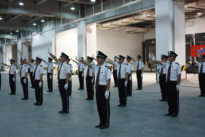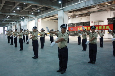 在建党90周年、建军84周年之际,公司为进一步加强秩序维护形象建设,提升秩序维护队伍的整体素质和服务品质,促进项目之间的交流和沟通,建立一支纪律严明、保障有力、忠于职守、信守承诺的坚强团队,组织开展了秩序大练兵活动。来自成都片区近30个项目的精兵强将,按片区组成方阵,在烈日炎炎下冒着酷热刻苦训练。参加岗位汇报表演的方队由第二、第三、第四片区和成华分公司秩序方阵组成,每个方阵26名队员。为了比武汇演,队员们在不耽误正常秩序工作的同时,经常利用业余时间进行训练。