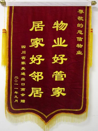 2011年10月8日,国庆大假后第一天上班,大合仓业主“四川省家具进出口商会”工作人员就来到忠信公司总部,手执感谢信并送来了一面大红锦旗:“物业好管家,居家好邻居”。