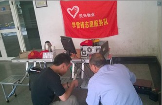民兴物业白马寺小区物业服务中心,按照2014年度学雷锋系列活动安排,于2014年5月8日在小区开展“学雷锋—为人民服务”自愿者活动。活动内容:在小区免费维修小家电、免费上门服务、开展燃气安全宣传及免费更换燃气炉灶热水器超期零部件。整个活动中业主参与积极,物管员工和业主互动气氛活跃,业主觉得这样的活动很实在,虽然只能解决他们生活中常常遇到的一些小问题,但心里热乎乎的。学雷锋志愿者活动,拉近了物业管理者与业主的感情,使小区人际关系更加和谐。