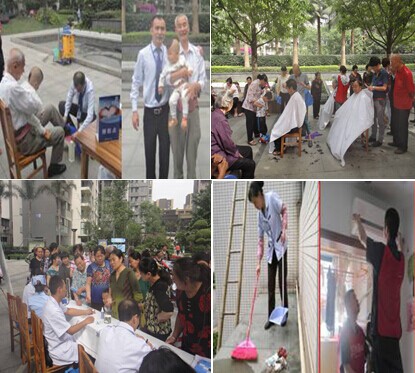用心服务、贴心关怀,金科物业在大胆创新,创造感动服务,增强业主满意度的同时,始终致力于推进金科物业品牌文化的传播,构建小区和谐的亲情氛围。5月20日,成都分公司各项目除了开展理发、量血压、擦鞋、磨刀常规活动外,还新加入“分享阳光,邻里相伴”的升级服务,动员业主和管理处一起在盛夏来临前进行家庭、园区大扫除,一系列以“爱您,从点滴做起”为主题的便民服务活动在成都金科一城、天籁城如火如荼地展开。