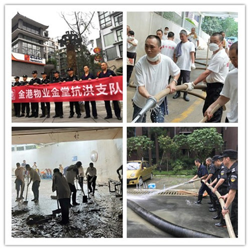 近日,四川省各地暴雨天气不断。受强降雨影响,金堂县出现特大洪涝灾情,河道水位普涨,路段被淹,通讯信号中断,部分小区受灾严重,设施设备瘫痪。在市、区物业协会号召下,成都市金港物业第一时间主动请缨支援。