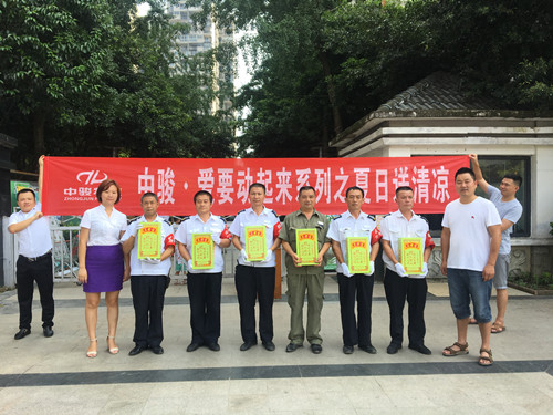 8月5日上午,中骏物业负责人一行带着公司的殷切关怀到各项目,亲切慰问各岗位一线员工,并将公司准备的高温慰问物品送至员工手中,让一线员工们在酷暑感受舒心的凉意。