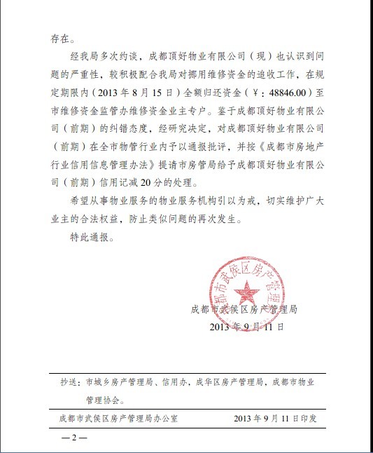 上一条:关于表彰2013年成都市物业管理优质服务窗口的决定 下一条:关于进一步加强中秋节、国庆节期间物业管理区域安全工作的通知