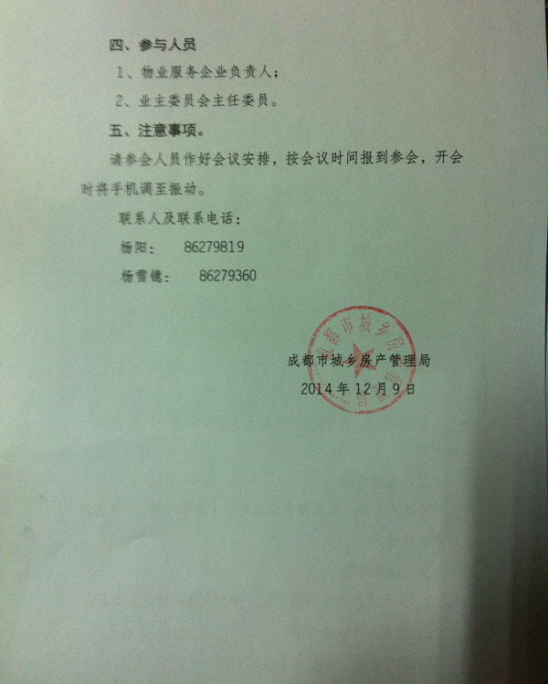 上一条:成都市城乡房产管理局关于进一步做好全市物业管理区域安全防范工作的通知 下一条:关于报送“业主年”主题活动总结报告的通知
