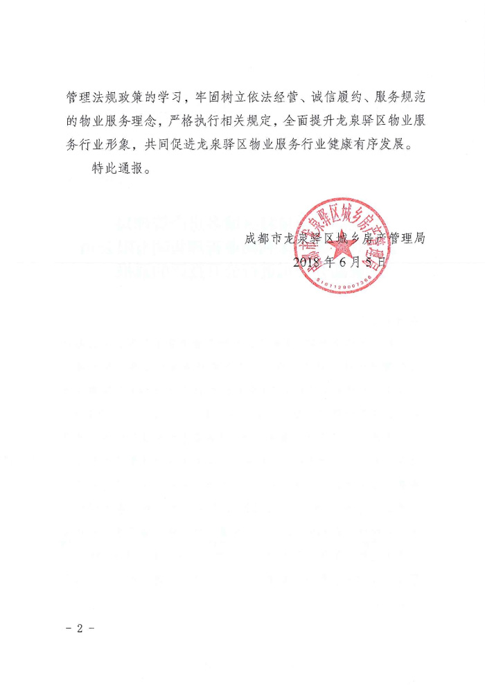 上一条:2016-2017年度四川省物业服务行业诚信评价成都市参评企业公示 下一条:关于组织参加红色物业之旅(成都站)物业法律公益大讲堂的通知