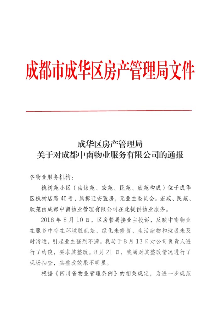 上一条:关于召开2018年度成都市物业管理行业信息联络员大会暨品牌形象提升培训会的通知 下一条:关于对成都港联物业管理有限公司的通报