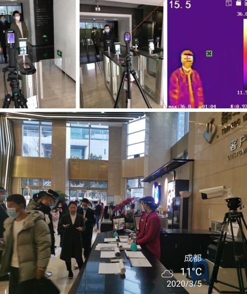 在透客科技专业人员的帮助下,泰丰国际广场的智能红外测温仪现已正式调试完毕,投入使用,大厦防控措施得到完美“升级”。