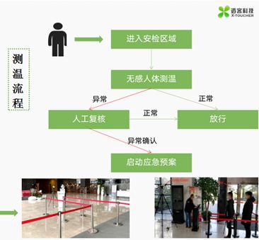 为解决客户需要快速安全通过大厅的需求,公司经多方考察,选中由透客科技研发的高科技智能红外测温产品,该产品具有测温准确、人员通行快速、易于统计、现场安装难度低等特点,特别适合大厦进入人员多、高峰时段人员集中的情况。