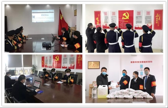 面对疫情,党员主动扛起责任。面对突如其来的疫情,为充分发挥党员的先锋模范作用,打好防疫工作主动仗,曲氏英联华物业公司党支部向全体党员及时发出”抗击疫情、党员先行“的倡议书,并组织党员重温入党誓词。同时,党支部还结合疫情防控工作的推进情况,不断组织党员传达学习党中央和地方党委政府关于疫情防控工作的最新指示、通告,让党员的思想统一到上级的决策部署上,让每一名党员明确自己的责任,主动作为、勇于担当,在党员队伍中叫响了“我是党员我先上”的口号。