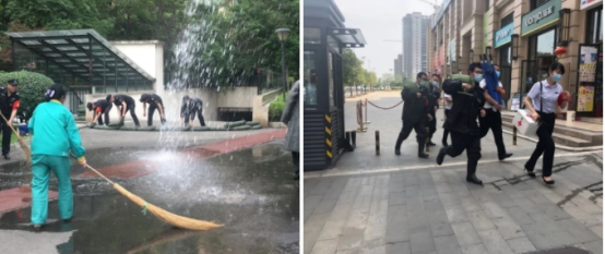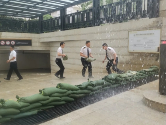 为了防止小区“水浸盘”,德商产投服务人下足了功夫。各项目全面排查小区所有的排水渠道并及时清理疏通,检查电子设施设备及各类机房,修筑临时隔水围栏,最大限度保障业主安全。