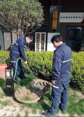 世茂物服务中西部区域不仅重视防汛演练,平日对小区的防汛排查也一丝不苟、未雨绸缪,各项目定期对小区总坪、屋顶雨水沟、积水井、排污泵等防汛重要设施设备进行专项巡检,确保排水系统运行正常,做好防汛前期各项准备,确保家园平安。