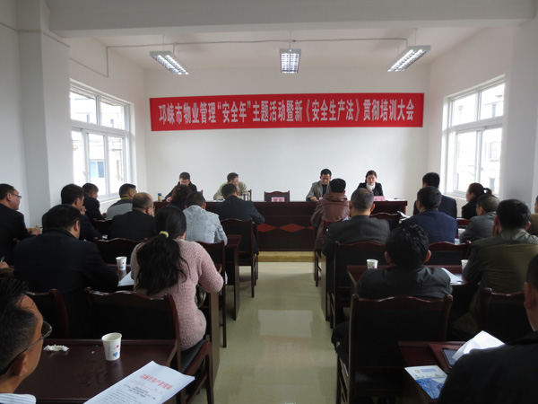 为进一步贯彻落实新《安全法》相关规定要求,结合我市物业管理工作实际,4月9日,市房管局组织全市44家物管企业负责人及安全管理人员参加了邛崃市物业管理“安全年”主题活动暨新《安全生产法》贯彻培训大会。