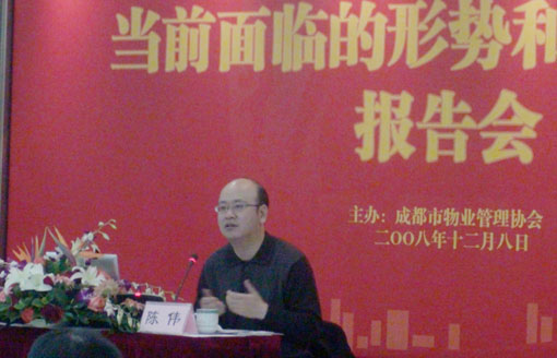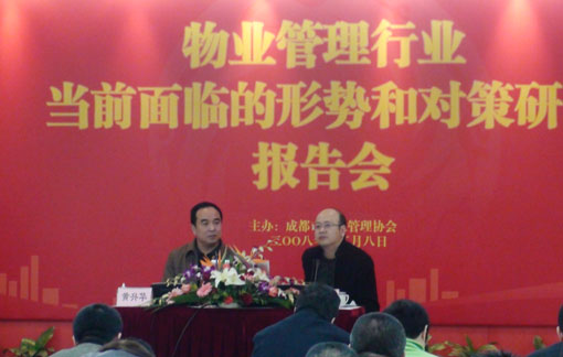 由成都市物业管理协会举办的“物业管理行业当前面临的形势和对策研究报告会”于2008年12月8日在成都市房产分中心3楼多功能会议厅成功举办。报告会邀请到了中国物业管理行业专家、中国物业管理协会秘书长