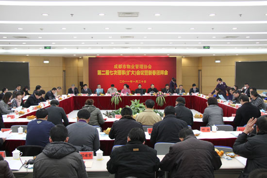 成都市物业管理协会第二届七次理事(扩大)会议,于2011120日在成都市房产分中心三楼多功能会议厅召开。市城乡房产管理局、市民政局有关领导出席会议,109名理事全部到会,部分优秀会员单位代表参加了会议。