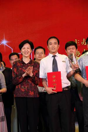 谢家瑾会长为晚会一等奖节目《成都,你早》颁发荣誉证书