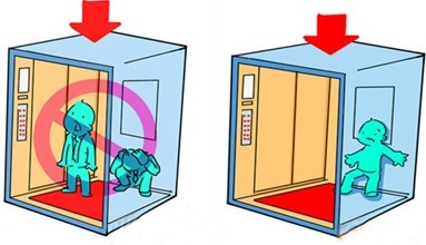 电梯门打开后,一定要确定轿厢到达并准确对位再进出电梯。电梯门正在关闭时,外面的乘客不要用手、脚等阻止关门,这时最好等待下次电梯,或者请电梯内的乘客按动开门按钮使层门重新开启。电梯内的人也不要伸手伸脚、探头探脑,更不能将携带的物品放在间隙处阻止梯门关闭。