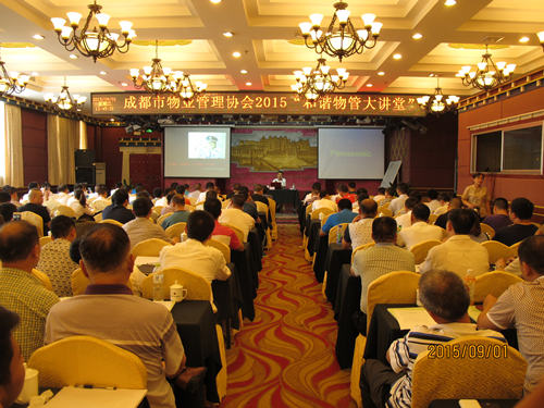 8月30日,由成都市物业管理协会组织的2015年“和谐物管大讲堂”(首期)行业免费轮训正式开讲,共750余名来自客户服务、秩序维护、环境维护三个岗位的一线从业人员参加培训,培训内容包括物业管理法规政策基础、职业道德与素养、岗位操作实务与服务技能等方面,培训师资均邀请具有丰富理论知识、实操经历和教学经验的省、市物业管理行业专家。